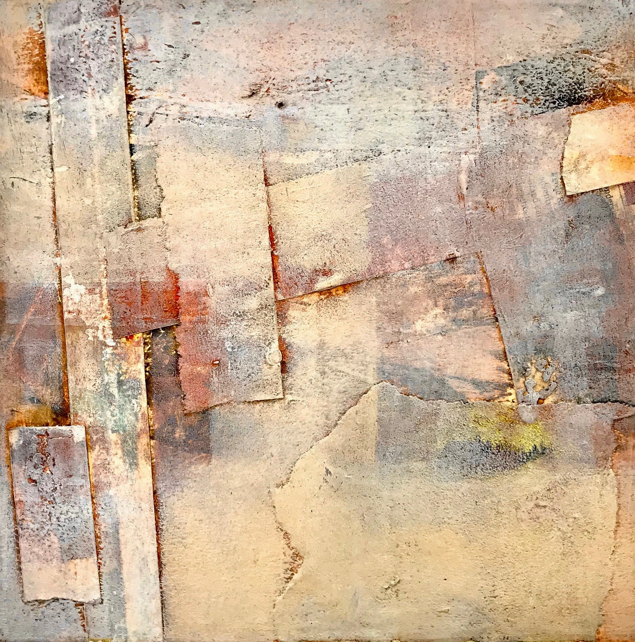 collage, oil pigment & beeswax on panel